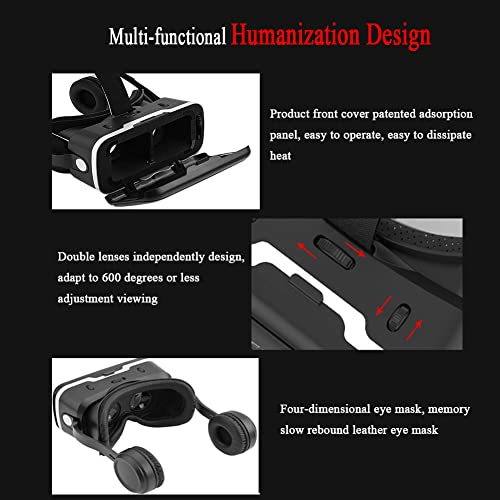Kafuty 3D VR Brille Smartphone VR Headset mit Kopfhörer für 3.5″ 6.0″ Android/iOS 40mm asphärische Linsen, 108 ° großes Sichtfeld HD Phone VR Viewer für Filme, Spiele