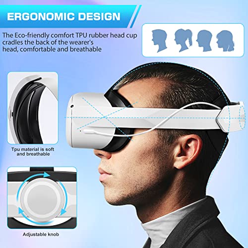 Specification: VR Elite Strap mit Akku 6000 mAh für Oculus Quest 2, Verstellbares Ersatz Komfortabler VR-Kopfband Zubehör, Weiss