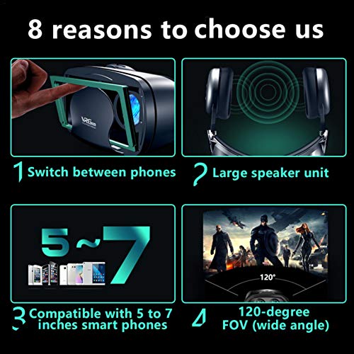 mit einem großen Headset: Die VRBrille mit einem großen Headset bietet ein großartiges Erlebnis Die Klangqualität ist stark und stabil der große Bildschirmrahmen ist abnehmbar sowohl große als auch kleine Bildschirmtelefone sind verfügbar maximale Unterstützung 7ZollBildschirmtelefon