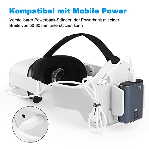 💐 【Mit einer abnehmbaren Power Bank-Halterung】: VR-Headset für Oculus Quest 2, Es ist eine Art Zubehör für Oculus Quest 2, über einen abnehmbaren Power Band-Halter am Kopf, der mit einer Power Bank mit einer Breite von 50-80 mm installiert werden kann. Sie müssen sich keine Gedanken mehr über die Akkulaufzeit von machen. Ersetzen Sie mühelos das Netzteil, um störende Phänomene und Wartezeiten beim Laden zu vermeiden.