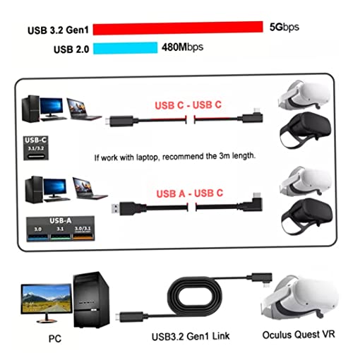 Specification: SouiWuzi VR-Headset-Verbindungskabel mit symmetrischem und reversiblen Design USB 3.2 Gen 1 Linkkabel Kompatibel mit Oculus Quest 2 Steam VR Datenübertragung Ladekabel USB A-C 3 0m