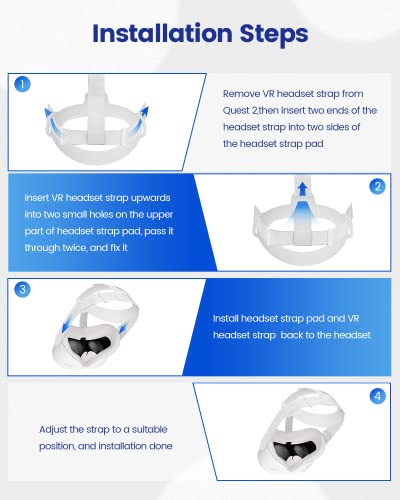 [Einfach zu installieren] – Einfach zu installieren, zu demontieren und zu ersetzen. Die mittlere feste Position wird durch den Headstrap-Shuttle-Typ festgelegt, und die beiden Seiten des Kopfkissens werden in einem Schnallenmodus fixiert, der direkt auf dem ursprünglichen Quest 2-Headstrap befestigt ist