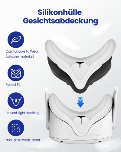 Specification: VR Face Cover Silikonhülle Gesichtsabdeckung für Oculus, BOZILY Ersatz Schweißfest VR Gesichtspolster, Waschbar VR Zubehör für Oculus Quest 2 Headset (Weiß)