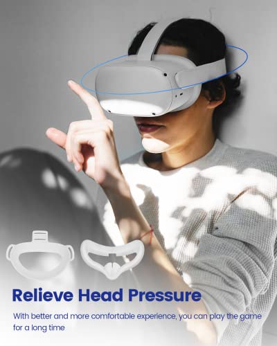 [Kopfdruck entlasten] – Dieses ergonomische Design wurde speziell für Oculus Quest 2 entwickelt, das das Problem des originalen Oculus Quest 2-Kopfbands, das das Gesicht drückt, perfekt löst, Stress reduziert und mehr Komfort bietet. Was Sie bekommen – 1 * White VR Headset Strap Pad und 1 * White Silicone Face Cover